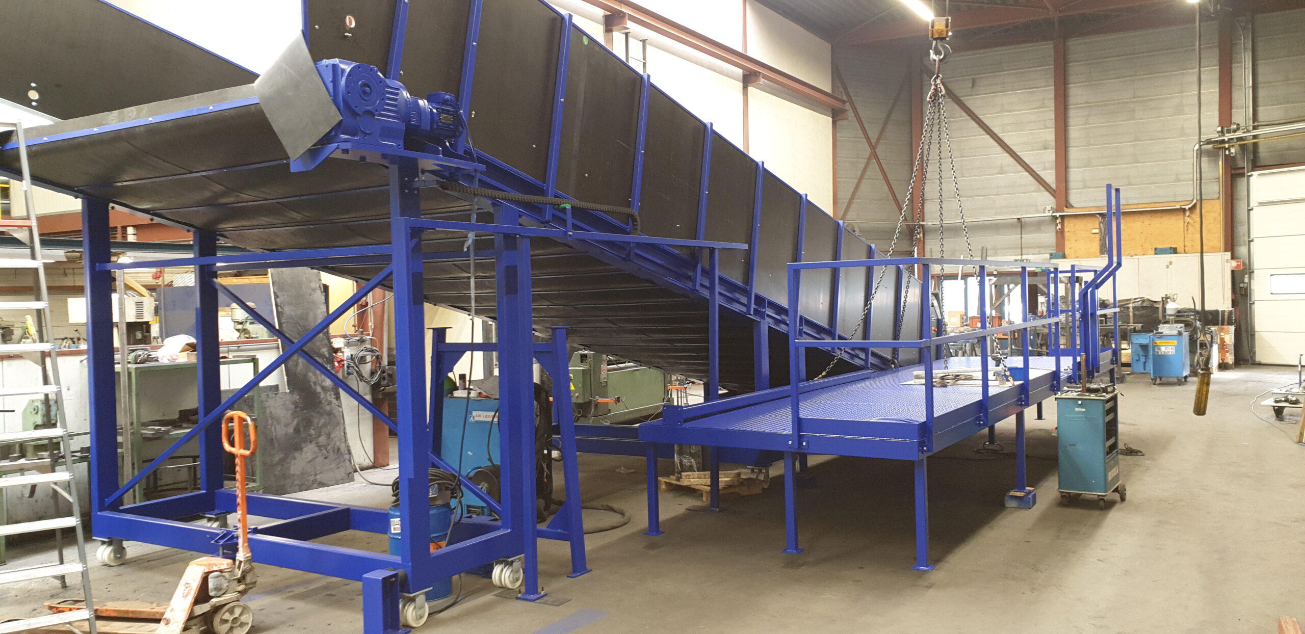 Dit sorteersysteem is volgens CE geproduceerd en geschikt voor 4 a 5 medewerkers. Het bestaat uit een onder- en bovenbordes, hefplateau (meerdere) en persunits. Compact en efficiënt om mee te werken.